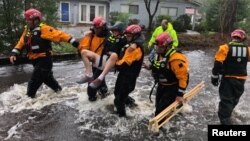 سطح آب در دریا های کرولینای شمالی بلند رفته و در برخی مناطق این ایالت سیلاب سرازیر شده است.