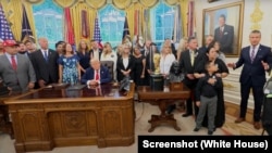 در هنگام امضای این اعلامیه که مصادف با چهارمین سالروز این رویداد بود، شماری از بازماندگان این نظامیان امریکایی در دفتر کار ترمپ حضور داشتند.